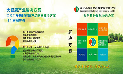 西安市小草植物科技有限責(zé)任公司成立于2004年,工廠(chǎng)位于西安市周至縣集賢工業(yè)區(qū),辦公室位于西安高新區(qū),一家具有進(jìn)出口權(quán)的技術(shù)型民營(yíng)企業(yè)。